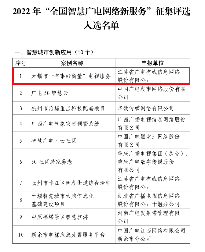 "It's easy to discuss" TV service project was selected as one of the top ten cases of smart city innovation and application of "National Smart Radio and Television Network New Service" in 2022