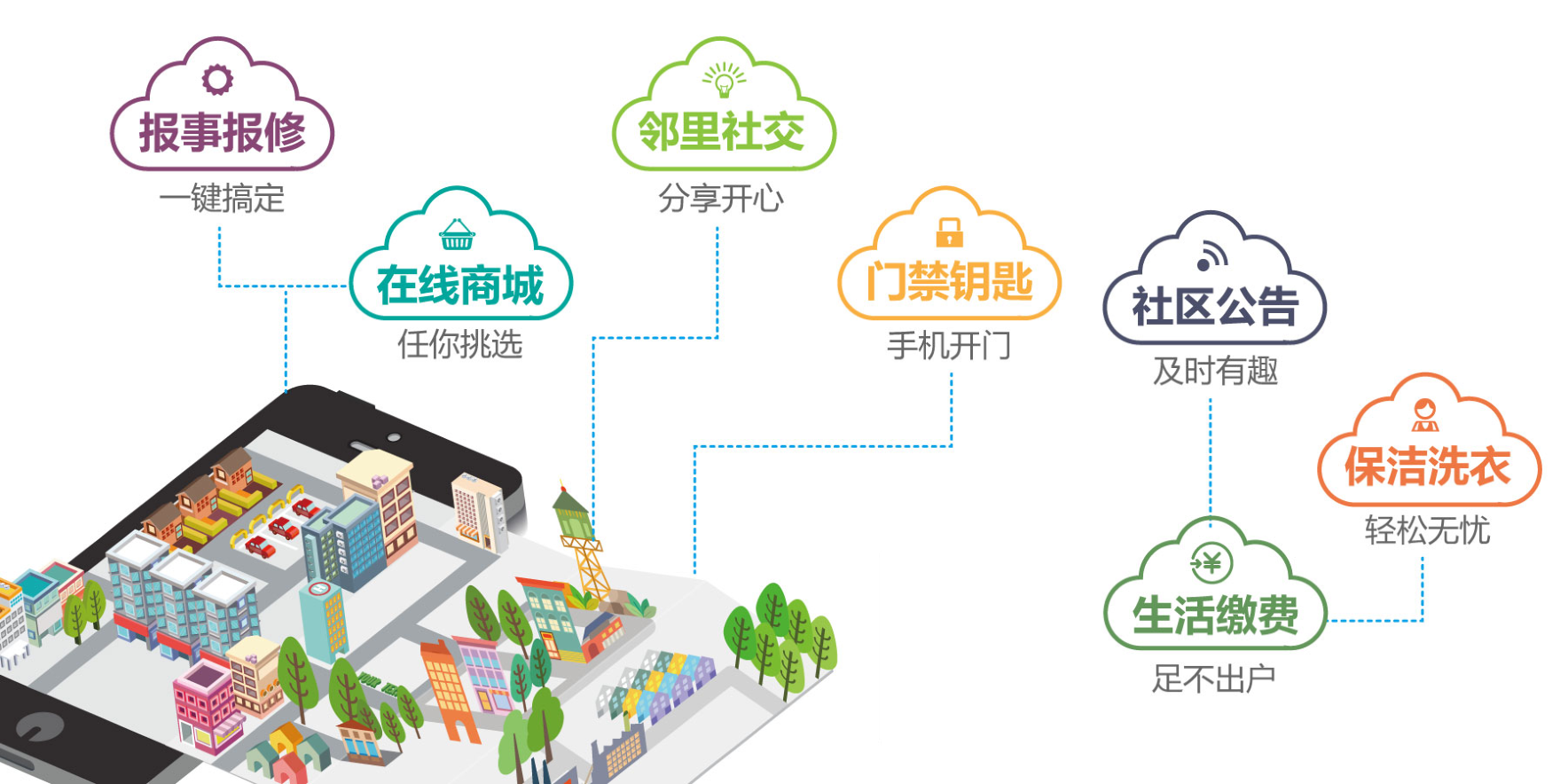 通過(guò)“平臺(tái)+硬件+運(yùn)營(yíng)”的軟硬件相結(jié)合理念,涵蓋到社區(qū)生活的方方面面,大到社區(qū)門(mén)禁、社區(qū)監(jiān)控、社區(qū)通訊等,小到家居設(shè)備、安全警報(bào)、居家醫(yī)療設(shè)備等,均可通過(guò)硬件設(shè)備將大數(shù)據(jù)收集傳輸備份至云端數(shù)據(jù)庫(kù),通過(guò)平臺(tái)整合分析可在線監(jiān)控社區(qū)安全、接受社區(qū)需求、提供社區(qū)服務(wù)等,有效提高工作效率和業(yè)主滿意度。