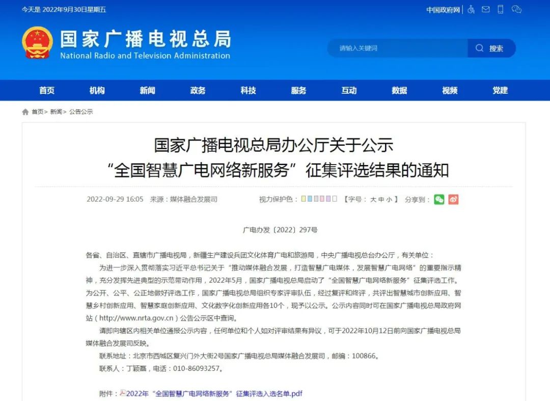 喜報(bào) | “有事好商量”電視服務(wù)項(xiàng)目入選2022年“全國(guó)智慧廣電網(wǎng)絡(luò)新服務(wù)”之智慧城市創(chuàng)新應(yīng)用10佳案列
